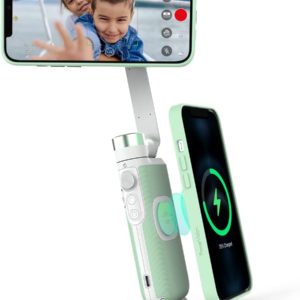PowerVision S1 3-Axis Gimbal Stabilizer Smartphone Gimbal Portable and Foldable, Built-in Tripod Wireless Powerbank, AI Tracking of Motions and Faces, Vlogging Stabilizer (Car Mount Kit, Green)